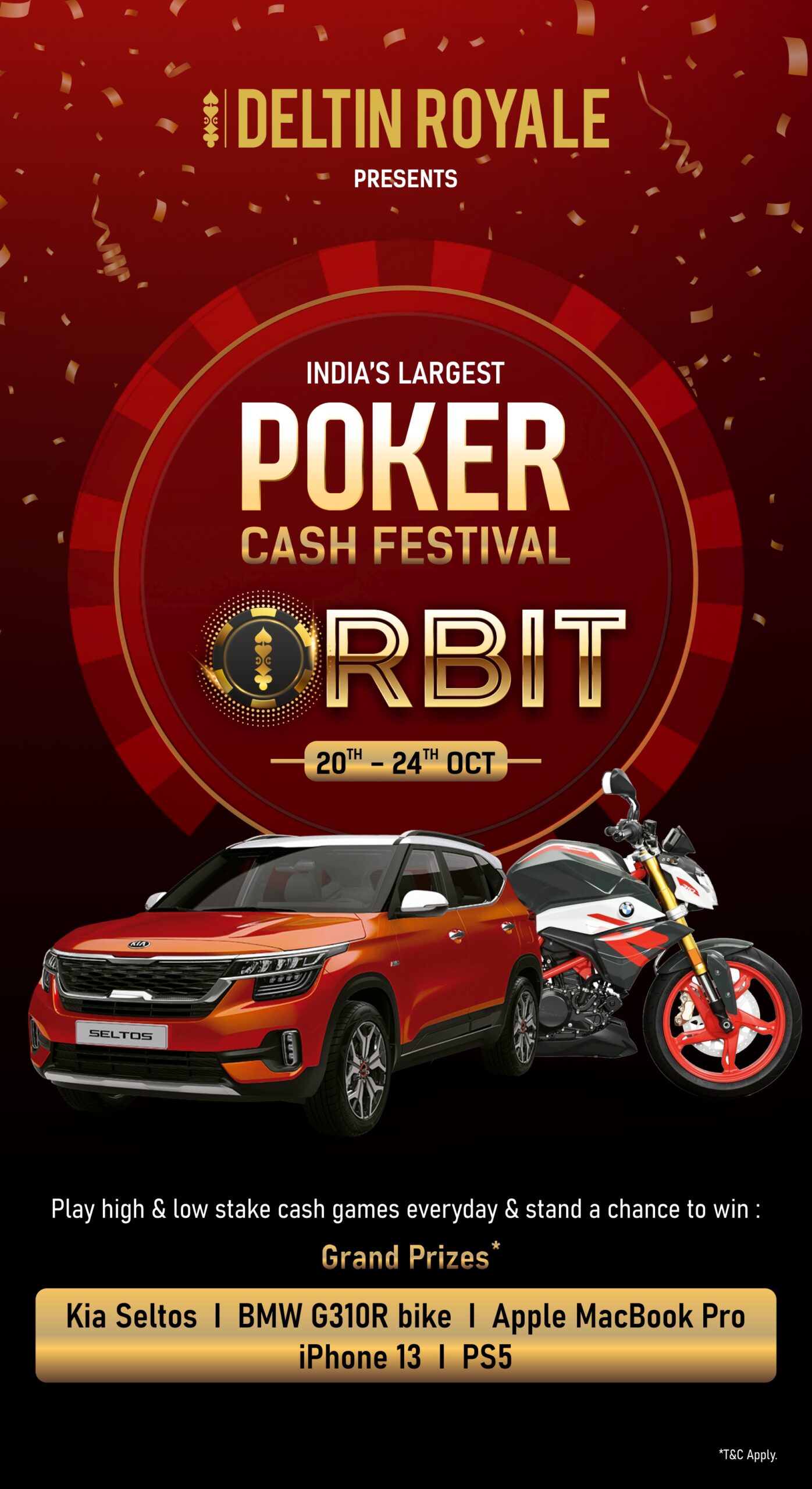 ORBIT festival begins on 20 October and will continue till 24 October and aims to offer a fun gaming and entertainment experience to all the poker enthusiasts. It is a one-of-a-kind festival that will witness a plethora of poker players showcasing their skills and competing for an array of prizes from the most celebrated brands like Kia, BMW, Apple, Sony etc.