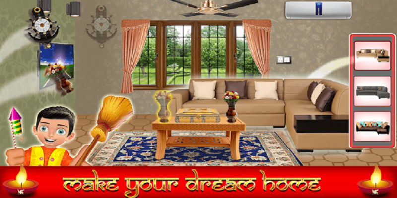 The levels in the Diwali mania game include cleaning the house, decorating it, hunting for crackers, making laddus, and decorating rooms. Especially for those who are unable to return home to celebrate this Diwali with their family and friends, the Diwali manane wala game will make you feel as though you are in your village. Thus, we begin by cleaning and fixing the house in preparation for Diwali.