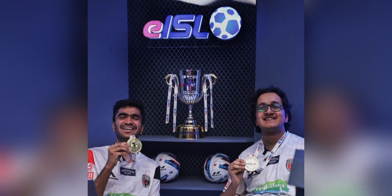 Saransh Jain and Emaad Jameel Ahmed teaming up for NorthEast United FC have emerged victorious in the second season of the eISL (Indian Super League) after defeating Sagnik Banerjee and Charanjot Singh from Bengaluru FC by 2-1 in the finals.