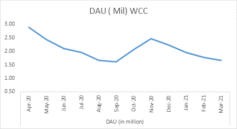 WCC (World Cricket Championship) is a cricket simulation game franchise on mobile and is played for ~46 minutes / day by over 15 Mn monthly active users. The game has a very strong franchise among the mid core gamers who love the virtual sports simulation genre and gets over 100,000 downloads every day organically and without any marketing spends.WCC revenues were flat in FY21 on account of drop in advertising rates in India due to COVID. Nazara expects growth in WCC to come from in-app purchases of virtual goods and WCC3 – the latest version of the game launched in July has been designed for enhancing in-app purchase conversion rates. Sports fantasy witnessed disruption in FY21 on account of lack of live matches in the first half of FY21 and regulatory turbulence triggered by legislative ordinances passed in few of the large states banning real money gaming operations. The lack of stability in the regulatory framework lead to Nazara taking a strategically cautious approach in this vertical till further clarity emerges.