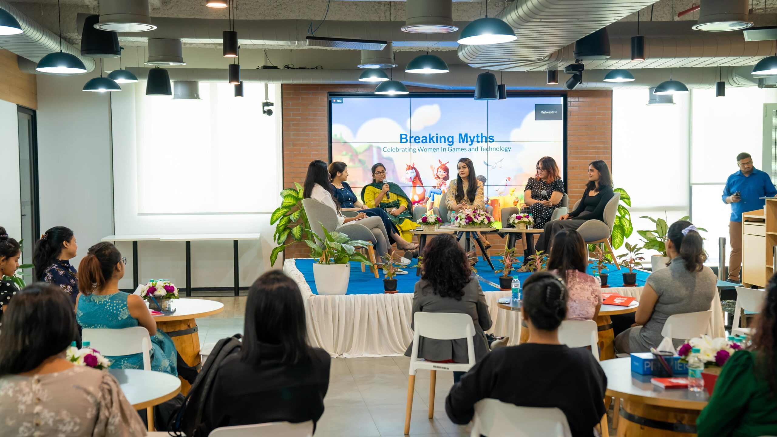 The meetup featured female leaders from within the organisation: associate general manager Poornima Seetharaman, director of products Shilpi Gupta, lead producer Divya Nair, data analytics manager Angel Joy, and senior concept artist Rutuja Kishor Patil.