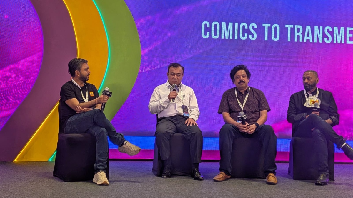 Next up was the session Comics to transmedia IP. The speakers of this session were Pran Comics chairman Nikhil Pran; screenplay writer and novelist, cartoonist and public speaker Anand Neelakantan; and Raj Comics founder Sanjay Gupta. The moderator for this session was Indusverse writer and CCO Alok Sharma. The speakers shared insights into the journey of comics evolving into transmedia properties, while also debating the complexities of IP laws and how they can, at times, favour publishers over artists.