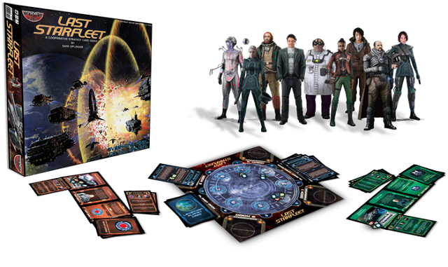 Last Starfleet is a co-operative strategy card game where everyone is helping each other to win and save mankind. Either everybody wins and mankind survives to look at another day or everyone dies and the human species faces extinction.