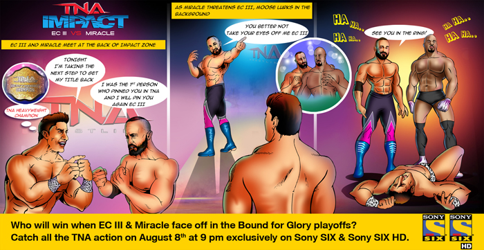 The inaugural comic strip features a vocal altercation between EC III and Miracle, as they threaten to take one another down at the TNA Heavyweight Championship. The comic strip will be a teaser to EC III and Miracle’s face off in the Bound for Glory playoffs, thus increasing the excitement levels for the upcoming episode.