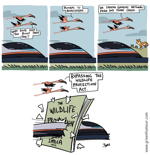 A comic that appeared in the Sunday issue of Mid-Day saw some serious environmental issue being focused. The Mumbai Metropolitan Region (MMR), which has lost significant green cover to infrastructure projects, is bracing for one of the biggest environmental blows, as the Mumbai-Ahmedabad Bullet Train project will take up 18.92 hectares of mangrove land and 117 hectares of forest land in Thane and Palghar districts, as mentioned in a media report.