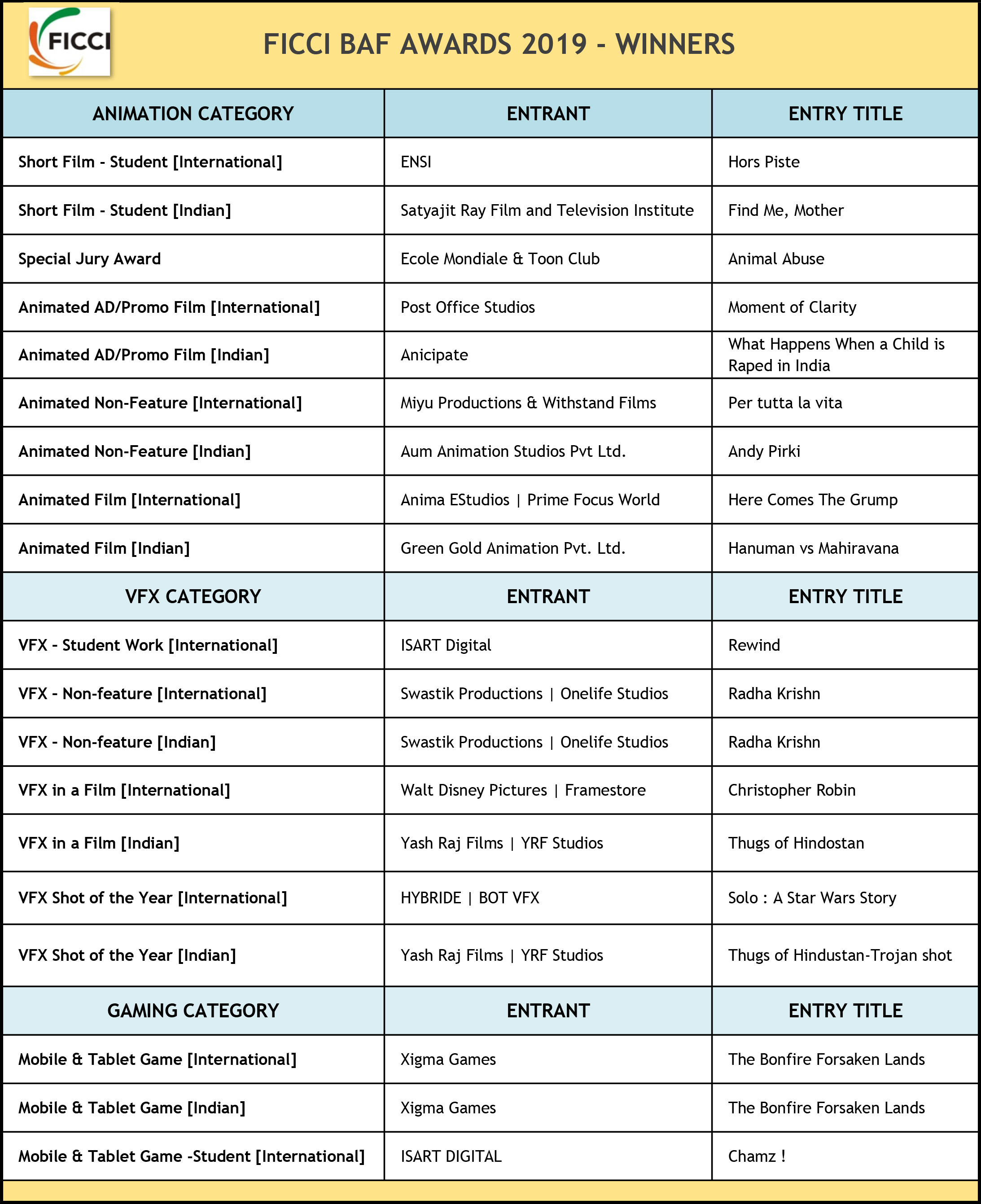 FICCI FRAMES, in its 20th edition, continues to honour the best from the animation, visual effects and gaming industry in India with its prestigious Best Animated Frames (BAF) Awards.