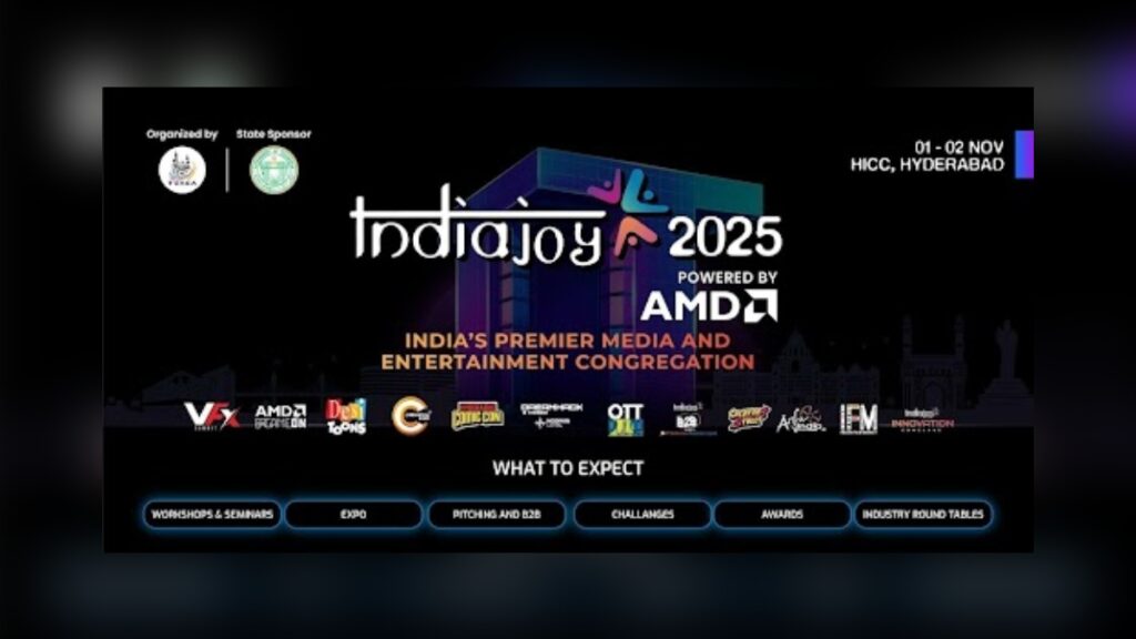 IndiaJoy 2025, the digital entertainment festival, will be held at HICC in Hyderabad from 1 to 2 November 2025. The event will bring together leading voices and innovations from across animation, VFX, film, comics, OTT, and digital media, all under one roof.