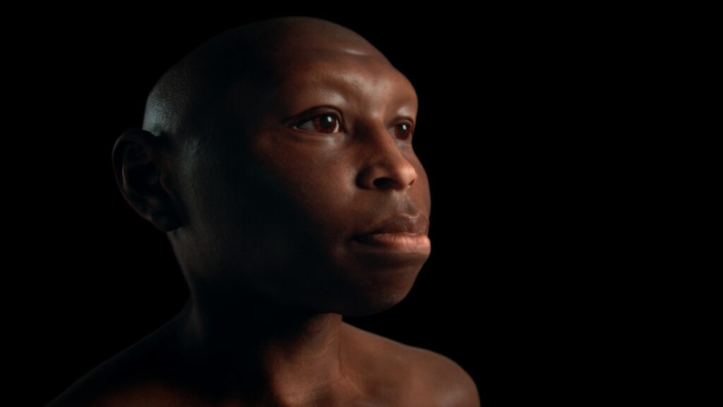 Once developed, the avatars were used in multiple ways. In some instances, they were composited directly into filmed environments as digi-doubles, enabling the production to populate remote archaeological locations without transporting actors or prosthetic teams. Elsewhere, the reconstructions appeared as standalone visualisations, offering audiences an intimate, face-to-face encounter with our ancestors.