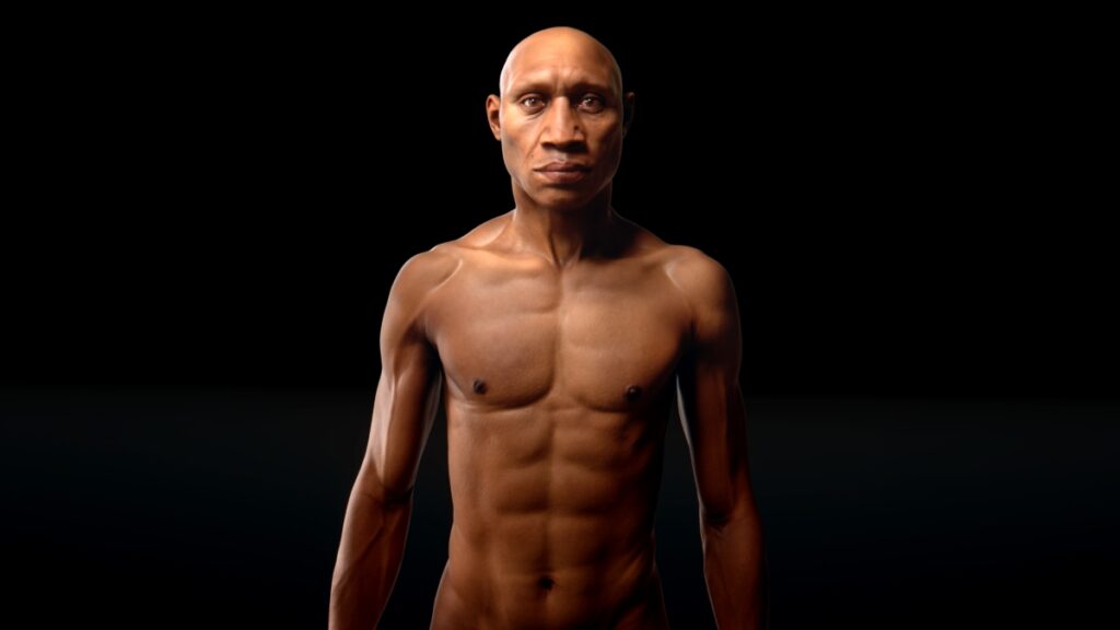 The raw scans provided photorealistic surface detail and geometry – pores, folds of skin, facial contours – but they were only the starting point. Lux Aeterna’s team refined the models further, guided by skeletal data and research provided by BBC scientists. Bone lengths, joint placement, facial proportions, and cranial structures were compared against anthropological records. Every ridge and contour had to withstand close scientific scrutiny.