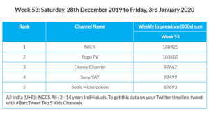 Nickelodeon forays into BARC’s ‘Top 10 Channels’ in all categories