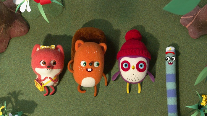 The cast includes Becca, a little bird (catchphrase: “Let’s wing it!”), with big ideas living with her friends who are ever-ready for an adventure. Confident, Russell the squirrel (catchphrase: “Macadamia!”) is the energetic, playful, and hungry one. Pedro (catchphrase: “I’m digging it!”) is an earthworm that is knowledgeable, stretchy, and courageous. Sylvia the fox (catchphrase: “Abra-ka-bag-rah!”), the youngest, carries a deceptively deep bag of random objects that come in handy on the Bunch’s adventures.