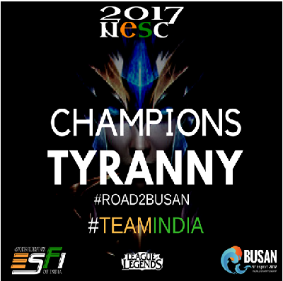 Five players from Team Tyranny and Abhinav Tejan (as Loveneet will not be able to go) will be part of the “Team India” contingent for the ninth Esports World Championship to be held at Busan, Korea from 8 to 12 November, 2017.