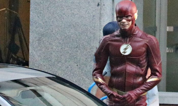 In a picture leaked online during a shoot, the lead Grant Gustin could be seen donning a new costume of The Flash, and it looks funkier than most of its previous versions. Whilst the badge continues to have a white background, the new golden borders and the abs-shaped folds give it a more appealing look. The shoulder line also sees a pair of straps, something not seen in any Flash costume before.