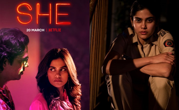 Written and created by renowned Bollywood filmmaker Imtiaz Ali, SHE revolves around a female constable, Bhumika Pardesi (Aaditi Pohankar) who’s “sent on an undercover mission to bust an underworld gang, and rises above her own expectations to find power in the most unexpected ways.”